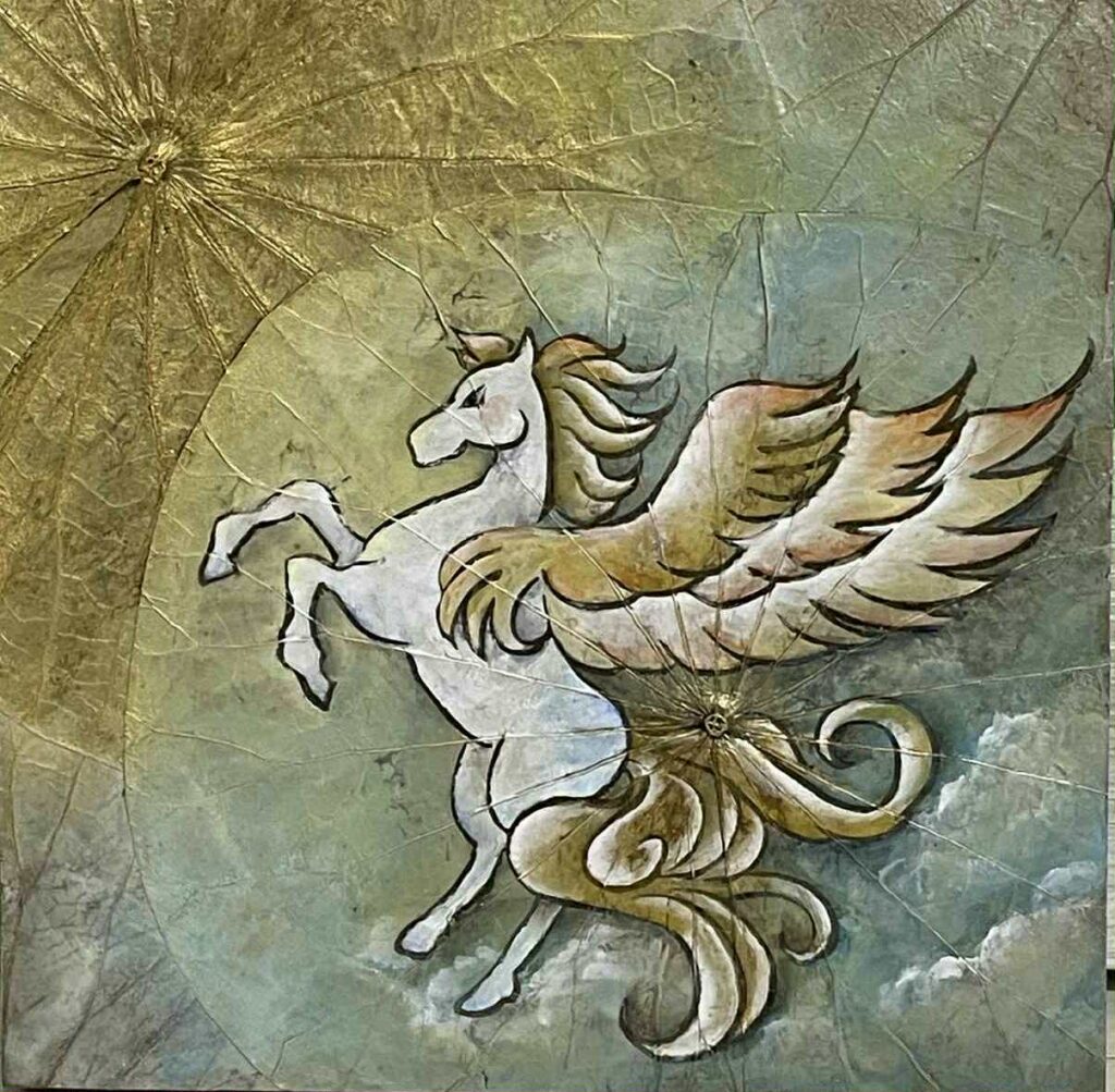 少し前に参加させていただいたボタニーペインティングのワークショップでペガサスも描けたら…と思いつきました。